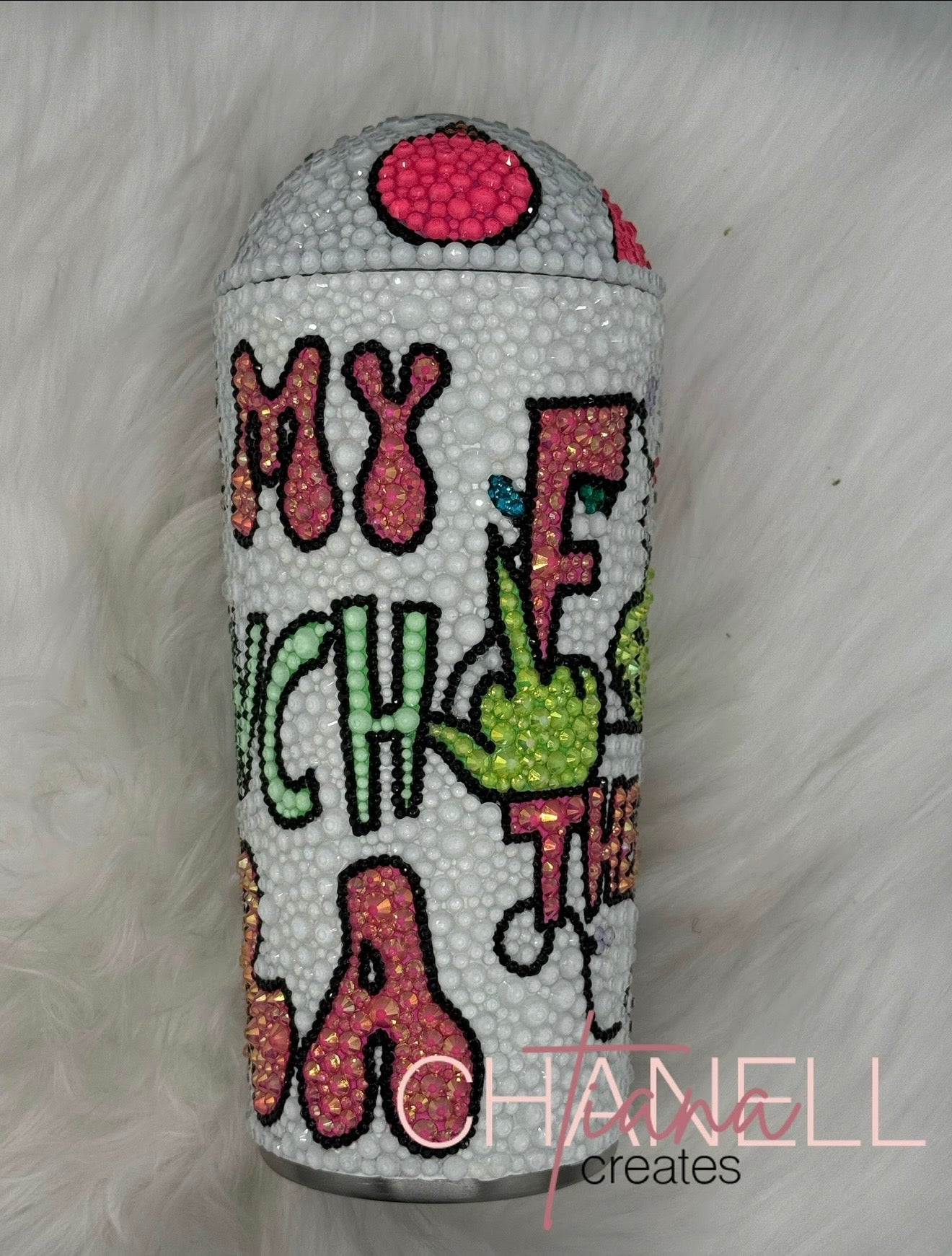 22 oz rhinestone tumbler. No changes can be made. Ready to Sell.